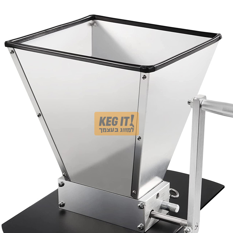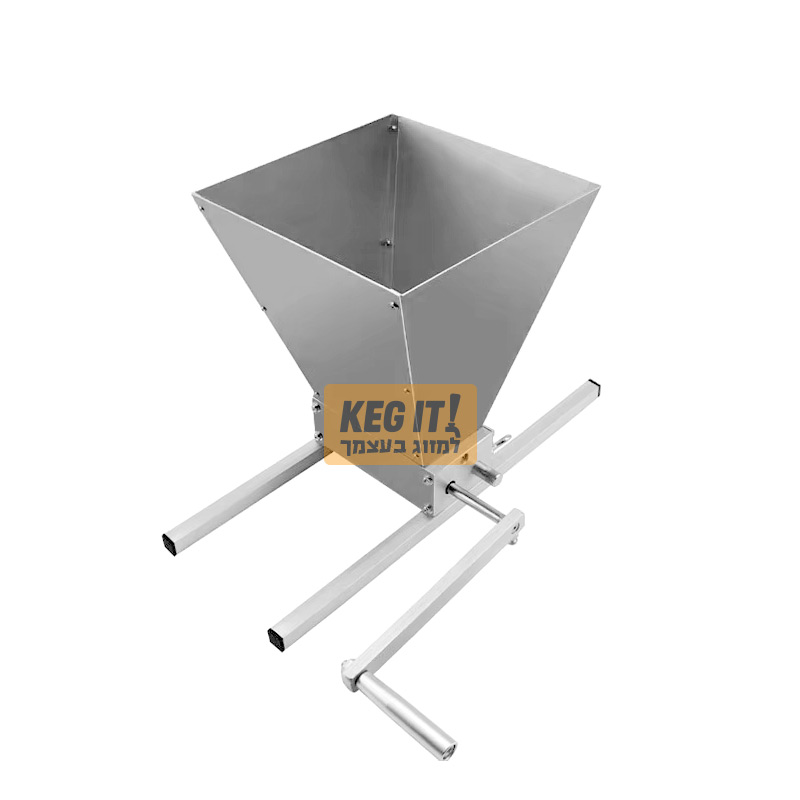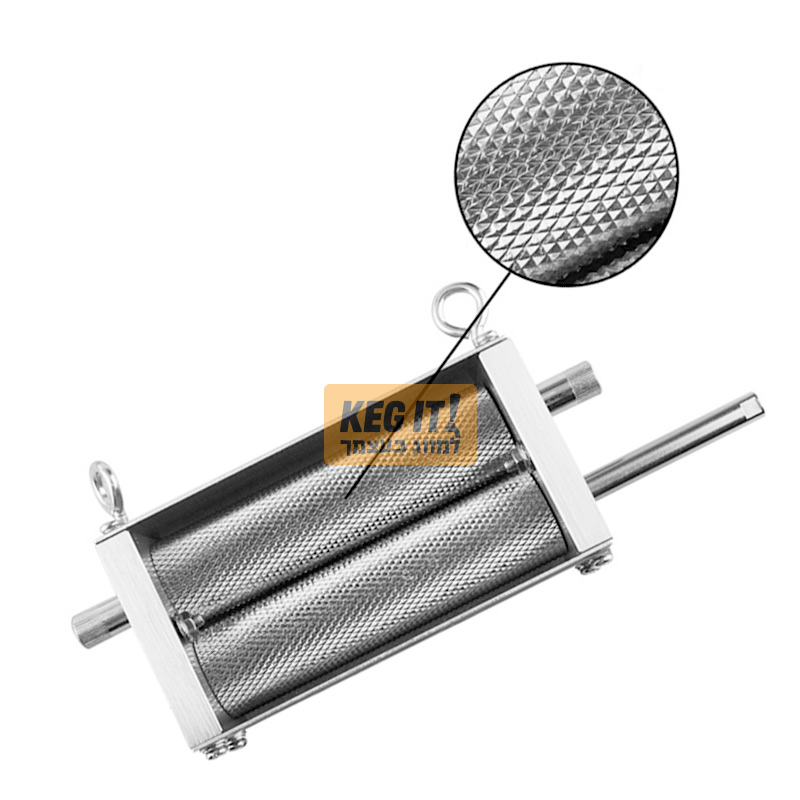 מגרסה ידנית עם מוט תואם לשימוש במברגה גודל גריסה מתכוונן בין 0.7-2.5 מ"מ מרווח בין הגלילים גלילי נירוסטה מסיביים בחיספוס עמוק לגריסה עוצמתית משפך קליטת גרעינים גדול ונוח במפתח ריבועי 22 ס"מ כולל שני מוטות בסיס המאפשרים הנחת המגרסה על דלי לקליטת החומר הגרוס