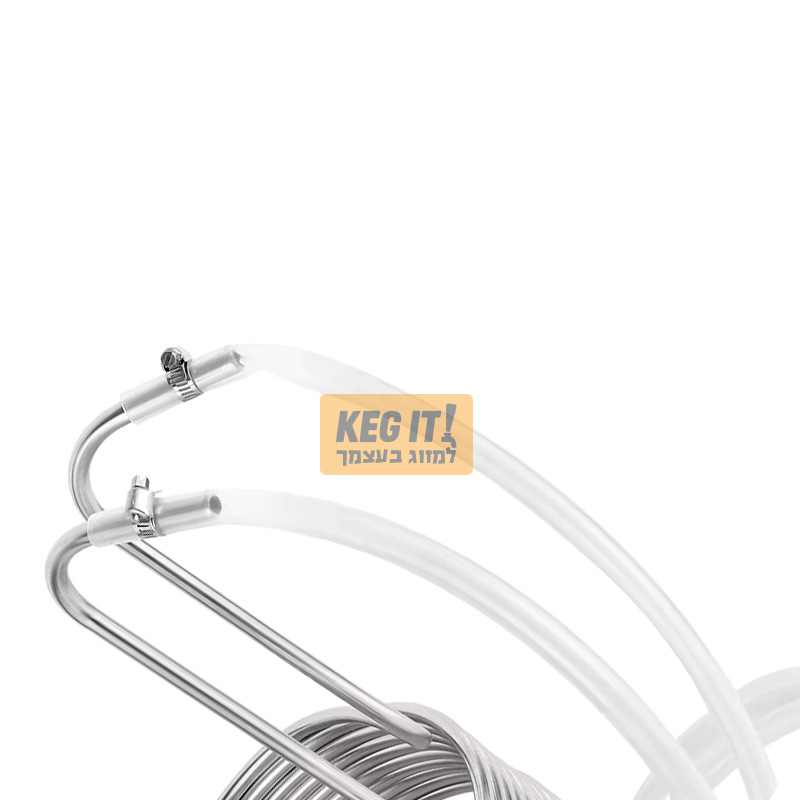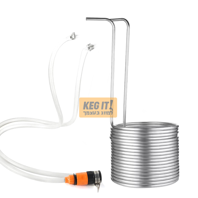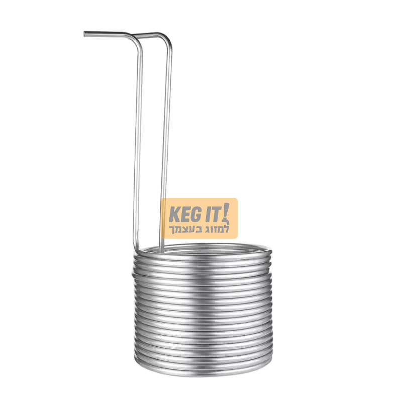 צינור נירוסטה בגליל מיועד להזרמת מים קרים דרכו, לצורך קירור התירוש בזמן בישול הבירה.